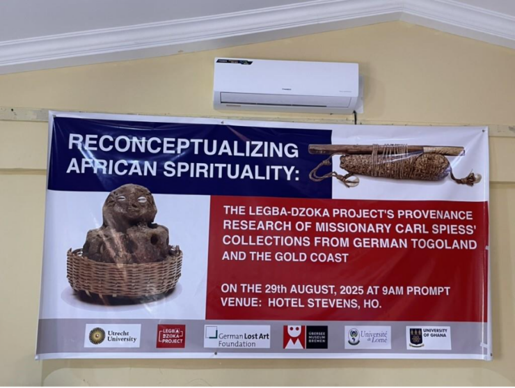 In late August/ early September 2025 we organized an internal workshop in Ho. Over two days, we discussed our findings in the light of our research aims so as to work towards our report about the provenance of this collection under colonial conditions, and to assess multiple perspectives and possibilities concerning its restitution and return. We also prepared our joint presentation for a set of workshops held in Ho (28 August), Accra (2 September) and Lomé (4 September) under the title Reconceptualizing African Spirituality/Repenser la spiritualité Africaine. Jan Hüsgen from the DZK was present in Ho and Ghana, and explained the DZK concerns with regard to critical provenance research on colonial collections.